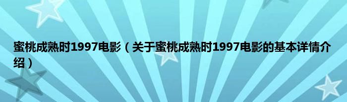 蜜桃成熟时1997电影(关于蜜桃成熟时1997电影的基本详情介绍)
