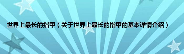 本文关于世界上最长的指甲的基本详情介绍就讲解完毕,希望对大家有所帮助。