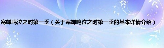 本文关于寒蝉鸣泣之时第一季的基本详情介绍就讲解完毕,希望对大家有所帮助。