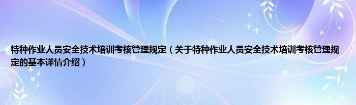 本文关于特种作业人员安全技术培训考核管理规定的基本详情介绍就讲解完毕,希望对大家有所帮助。