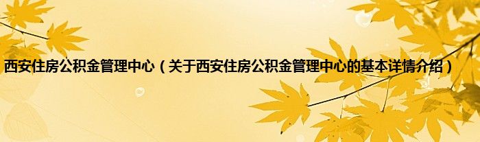 本文关于西安住房公积金管理中心的基本详情介绍就讲解完毕,希望对大家有所帮助。