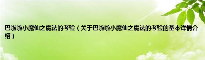本文关于巴啦啦小魔仙之魔法的考验的基本详情介绍就讲解完毕,希望对大家有所帮助。