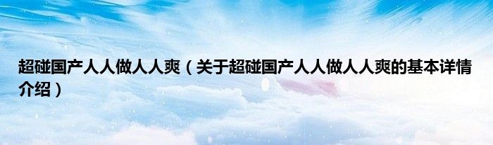 本文关于超碰国产人人做人人爽的基本详情介绍就讲解完毕,希望对大家有所帮助。