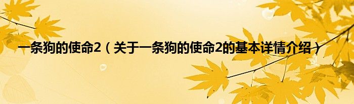 本文关于一条狗的使命2的基本详情介绍就讲解完毕,希望对大家有所帮助。