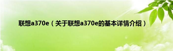 本文关于联想a370e的基本详情介绍就讲解完毕,希望对大家有所帮助。