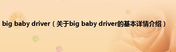 本文关于big baby driver的基本详情介绍就讲解完毕,希望对大家有所帮助。