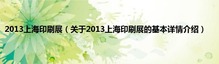 本文关于2013上海印刷展的基本详情介绍就讲解完毕,希望对大家有所帮助。