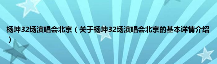 本文关于杨坤32场演唱会北京的基本详情介绍就讲解完毕,希望对大家有所帮助。