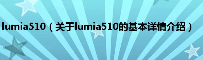 本文关于lumia510的基本详情介绍就讲解完毕,希望对大家有所帮助。