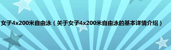 本文关于女子4x200米自由泳的基本详情介绍就讲解完毕,希望对大家有所帮助。