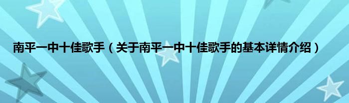 本文关于南平一中十佳歌手的基本详情介绍就讲解完毕,希望对大家有所帮助。