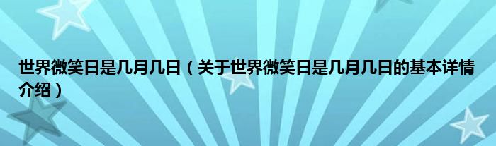 本文关于世界微笑日是几月几日的基本详情介绍就讲解完毕,希望对大家有所帮助。