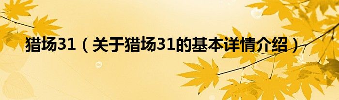 本文关于猎场31的基本详情介绍就讲解完毕,希望对大家有所帮助。