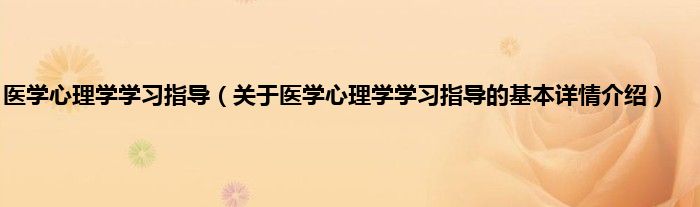 本文关于医学心理学学习指导的基本详情介绍就讲解完毕,希望对大家有所帮助。