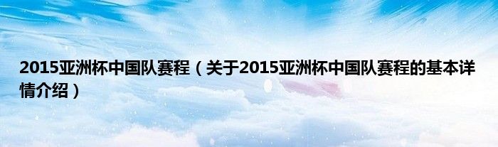 本文关于2015亚洲杯中国队赛程的基本详情介绍就讲解完毕,希望对大家有所帮助。