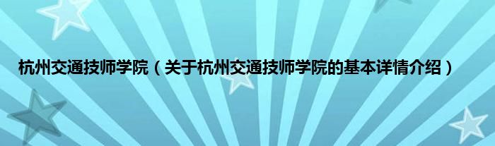 本文关于杭州交通技师学院的基本详情介绍就讲解完毕,希望对大家有所帮助。