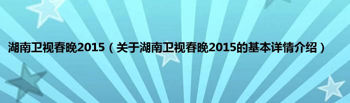本文关于湖南卫视春晚2015的基本详情介绍就讲解完毕,希望对大家有所帮助。