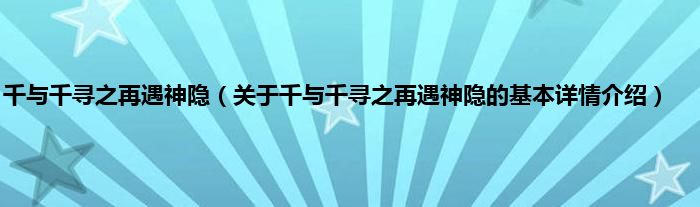 本文关于千与千寻之再遇神隐的基本详情介绍就讲解完毕,希望对大家有所帮助。