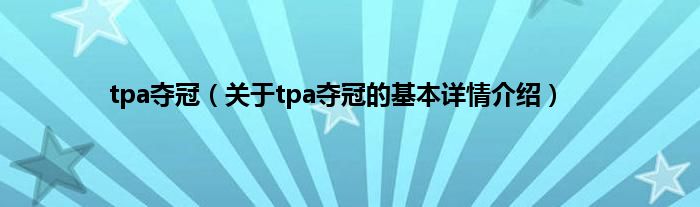 本文关于tpa夺冠的基本详情介绍就讲解完毕,希望对大家有所帮助。