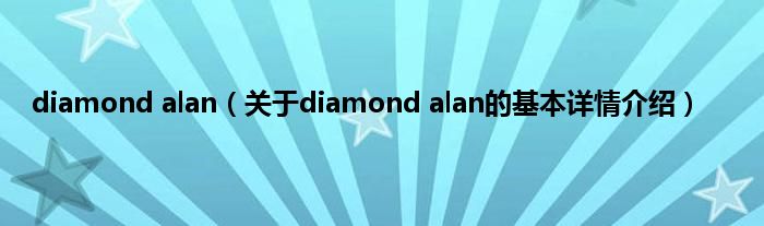 本文关于diamond alan的基本详情介绍就讲解完毕,希望对大家有所帮助。