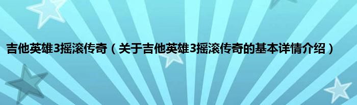 本文关于吉他英雄3摇滚传奇的基本详情介绍就讲解完毕,希望对大家有所帮助。