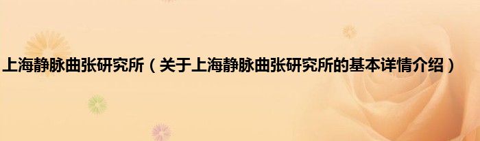 本文关于上海静脉曲张研究所的基本详情介绍就讲解完毕,希望对大家有所帮助。