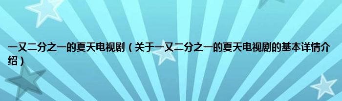 本文关于一又二分之一的夏天电视剧的基本详情介绍就讲解完毕,希望对大家有所帮助。
