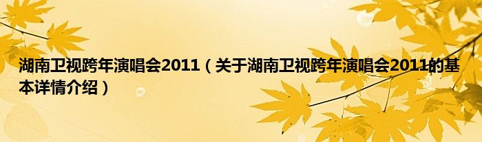 本文关于湖南卫视跨年演唱会2011的基本详情介绍就讲解完毕,希望对大家有所帮助。