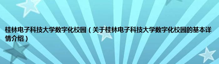 桂林电子科技大学数字化校园(关于桂林电子科技大学数字化校园的基本详情介绍)