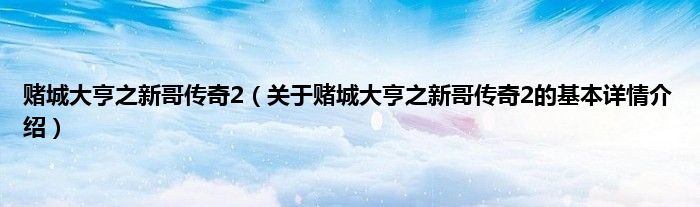 本文关于赌城大亨之新哥传奇2的基本详情介绍就讲解完毕,希望对大家有所帮助。
