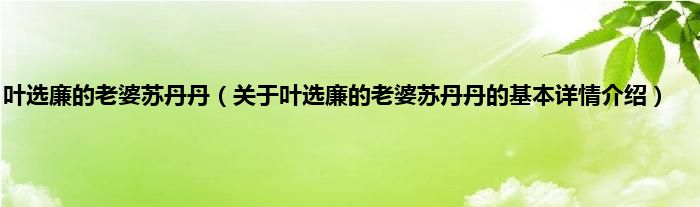 本文关于叶选廉的老婆苏丹丹的基本详情介绍就讲解完毕,希望对大家有所帮助。
