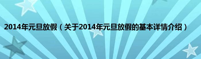 本文关于2014年元旦放假的基本详情介绍就讲解完毕,希望对大家有所帮助。