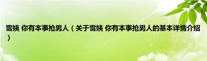本文关于雪姨 你有本事抢男人的基本详情介绍就讲解完毕,希望对大家有所帮助。