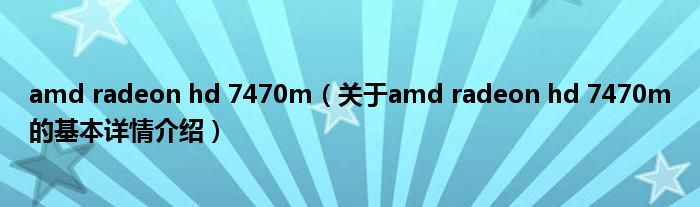 本文关于amd radeon hd 7470m的基本详情介绍就讲解完毕,希望对大家有所帮助。