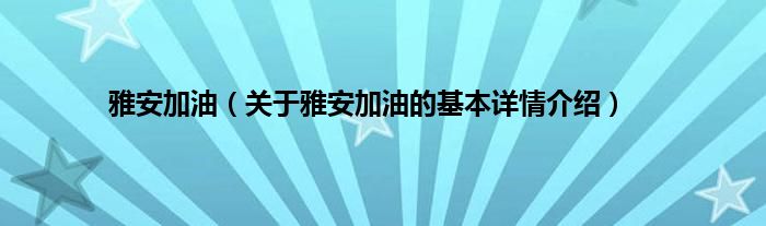 大家好我是小蝌蚪,雅安加油,关于雅安加油的基本详情介绍很多人还不知道,那么现在让我们一起来看看吧!