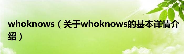 本文关于whoknows的基本详情介绍就讲解完毕,希望对大家有所帮助。