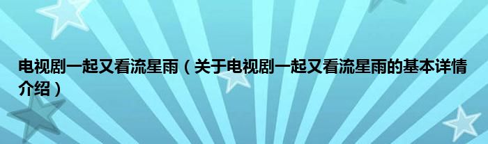本文关于电视剧一起又看流星雨的基本详情介绍就讲解完毕,希望对大家有所帮助。