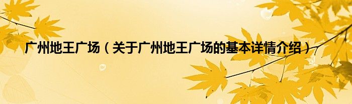 本文关于广州地王广场的基本详情介绍就讲解完毕,希望对大家有所帮助。