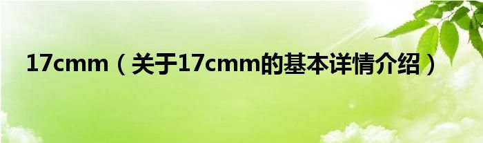 本文关于17cmm的基本详情介绍就讲解完毕,希望对大家有所帮助。