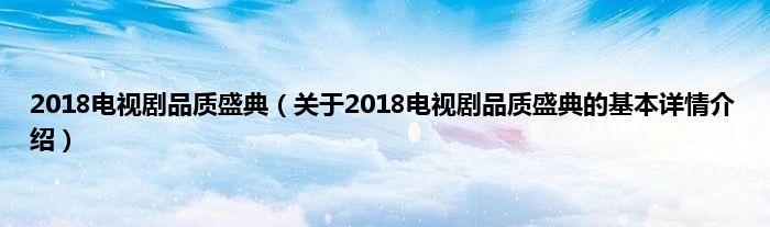 本文关于2018电视剧品质盛典的基本详情介绍就讲解完毕,希望对大家有所帮助。