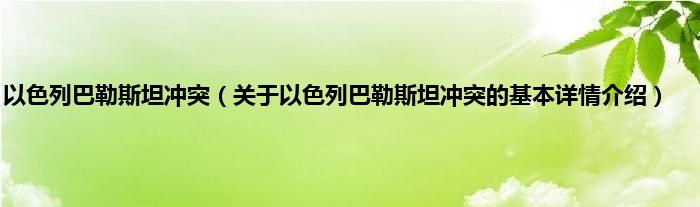 本文关于以色列巴勒斯坦冲突的基本详情介绍就讲解完毕,希望对大家有所帮助。