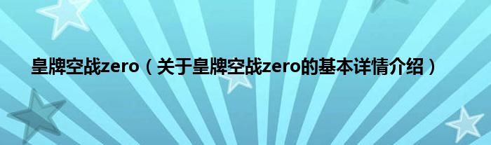 本文关于皇牌空战zero的基本详情介绍就讲解完毕,希望对大家有所帮助。