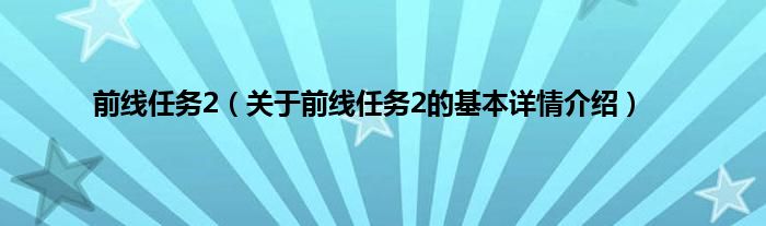 大家好我是小蝌蚪,前线任务2,关于前线任务2的基本详情介绍很多人还不知道,那么现在让我们一起来看看吧!