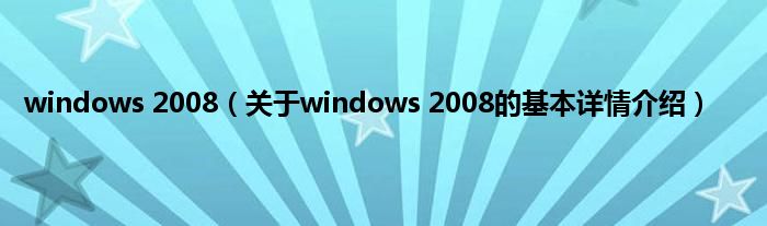 本文关于windows 2008的基本详情介绍就讲解完毕,希望对大家有所帮助。