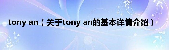 本文关于tony an的基本详情介绍就讲解完毕,希望对大家有所帮助。