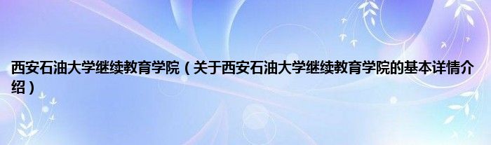 本文关于西安石油大学继续教育学院的基本详情介绍就讲解完毕,希望对大家有所帮助。