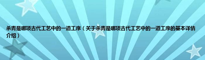 杀青是哪项古代工艺中的一道工序(关于杀青是哪项古代工艺中的一道工序的基本详情介绍)