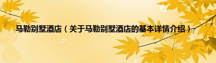 本文关于马勒别墅酒店的基本详情介绍就讲解完毕,希望对大家有所帮助。