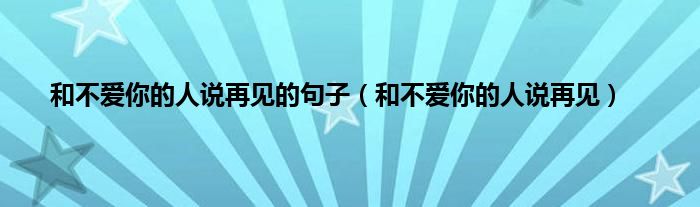 大家好,小问来为大家解答以上问题。和不爱你的人说再见的句子,和不爱你的人说再见这个很多人还不知道,现在让我们一起来看看吧!