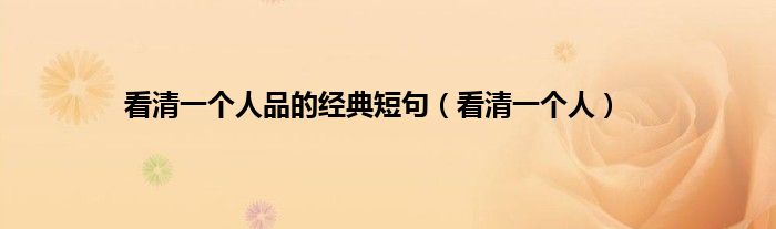 大家好,小问来为大家解答以上问题。看清一个人品的经典短句,看清一个人这个很多人还不知道,现在让我们一起来看看吧!